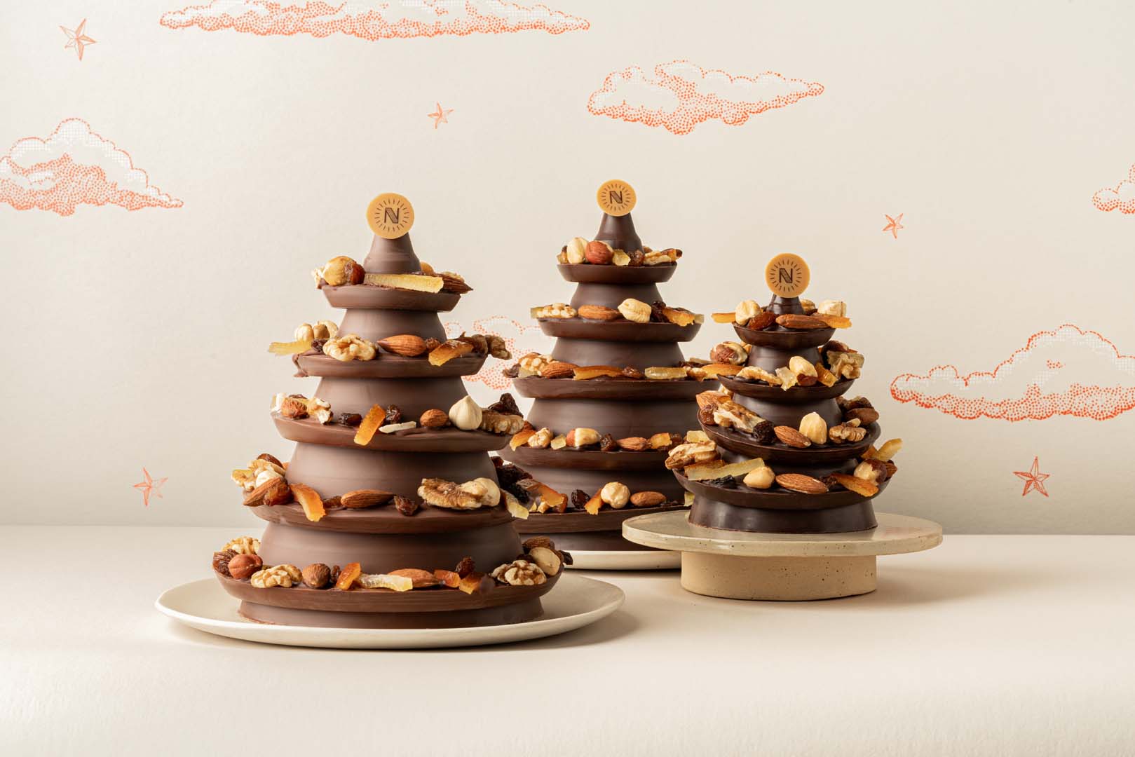 Nos sapins en chocolat, croustillants ou mendiants, apportent eux aussi leur part de magie. Façonnés à la main, ils conjuguent tradition et gourmandise pour devenir des pièces incontournables des tables de fête.