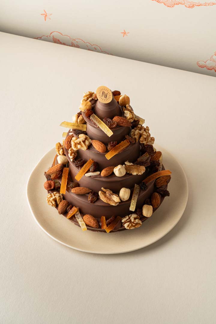 Les sapins mendiant Maison Nivon sont confectionnés à la main et garnis de fruits secs (noix, amandes, noisettes) et de fruits confits (orange, citron), pour un équilibre parfait entre textures et saveurs. Vous pouvez choisir votre chocolat : au lait Bahibé 46% ou noir Caraïbe 66% Valrhona. Une idée cadeau unique pour illuminer vos fêtes et partager un Noël gourmand et traditionnel.